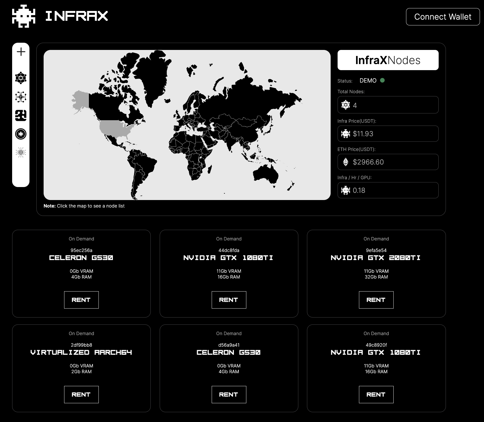 ◾️Node Network Map displaying regions hosting INFRAX Nodes/Node Count.